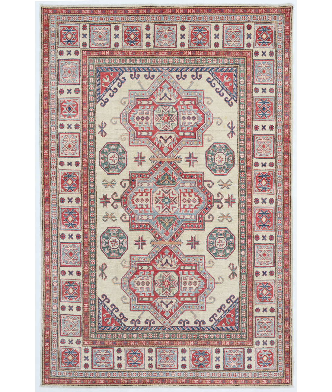 • Hand-Knotted Excellence: Each Kazak rug is meticulously hand-knotted using time-honored techniques, ensuring heirloom quality and unmatched craftsmanship.