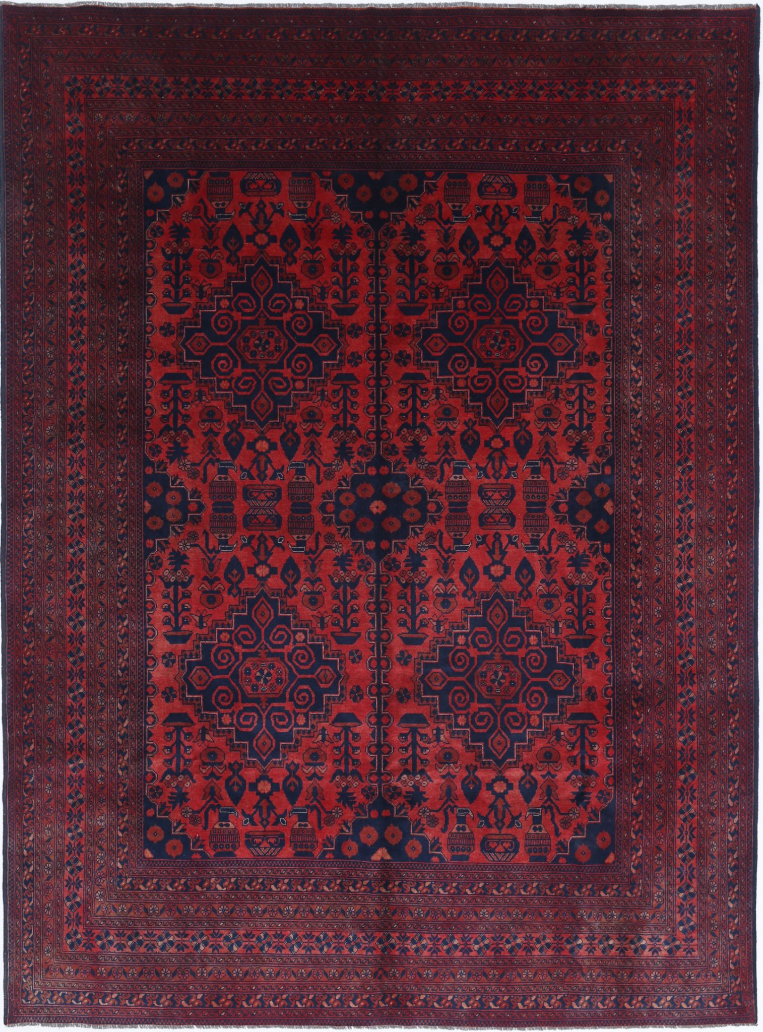 Afghan Khal Muhammadi rugs are a type of rug that is woven in Afghanistan. They are known for their intricate designs, which are often geometric in nature. Afghan Khal Muhammadi rugs are also known for their use of high-quality wool, which gives them a luxurious feel. Features Afghan Khal Muhammadi rugs are typically made from high-quality wool. They are woven with intricate designs, often geometric in nature. They have a luxurious feel due to the high-quality wool used to make them. Afghan Khal Muhammadi rugs are available in a variety of sizes and colors, including red, navy, and other earthy tones. Afghan Khal Muhammadi rugs are named after the village of Khal Muhammadi, where they are traditionally woven. Luxury: Afghan Khal Muhammadi rugs are known for their luxurious feel and intricate designs. Durability: Afghan Khal Muhammadi rugs are made from high-quality wool and have a dense pile, which makes them durable and long-lasting. Affordability: Afghan Khal Muhammadi rugs are relatively affordable, making them a great option for those on a budget.