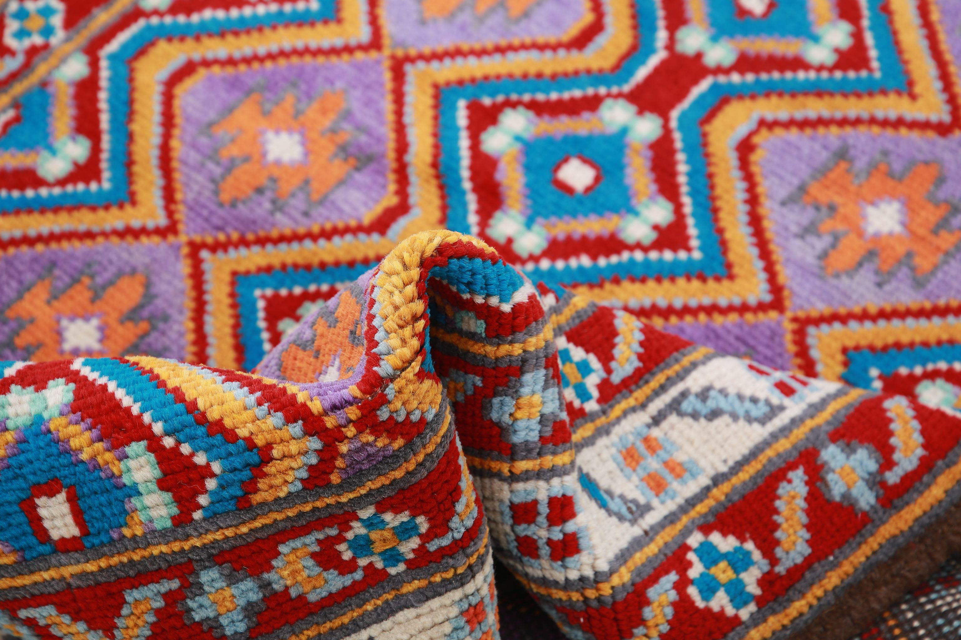 Esta colección de alfombras proviene de pueblos de Afganistán y está tejida en lana. La mayoría de los diseños tienen un hermoso patrón geométrico en una variedad de colores vibrantes, que incluyen rojo, azul, verde, dorado y amarillo. El estilo tribal de estas coloridas alfombras sería una gran adición a cualquier habitación de su hogar. La alfombra está anudada con un método de tejido suelto, es decir, como la colección Oushak.
