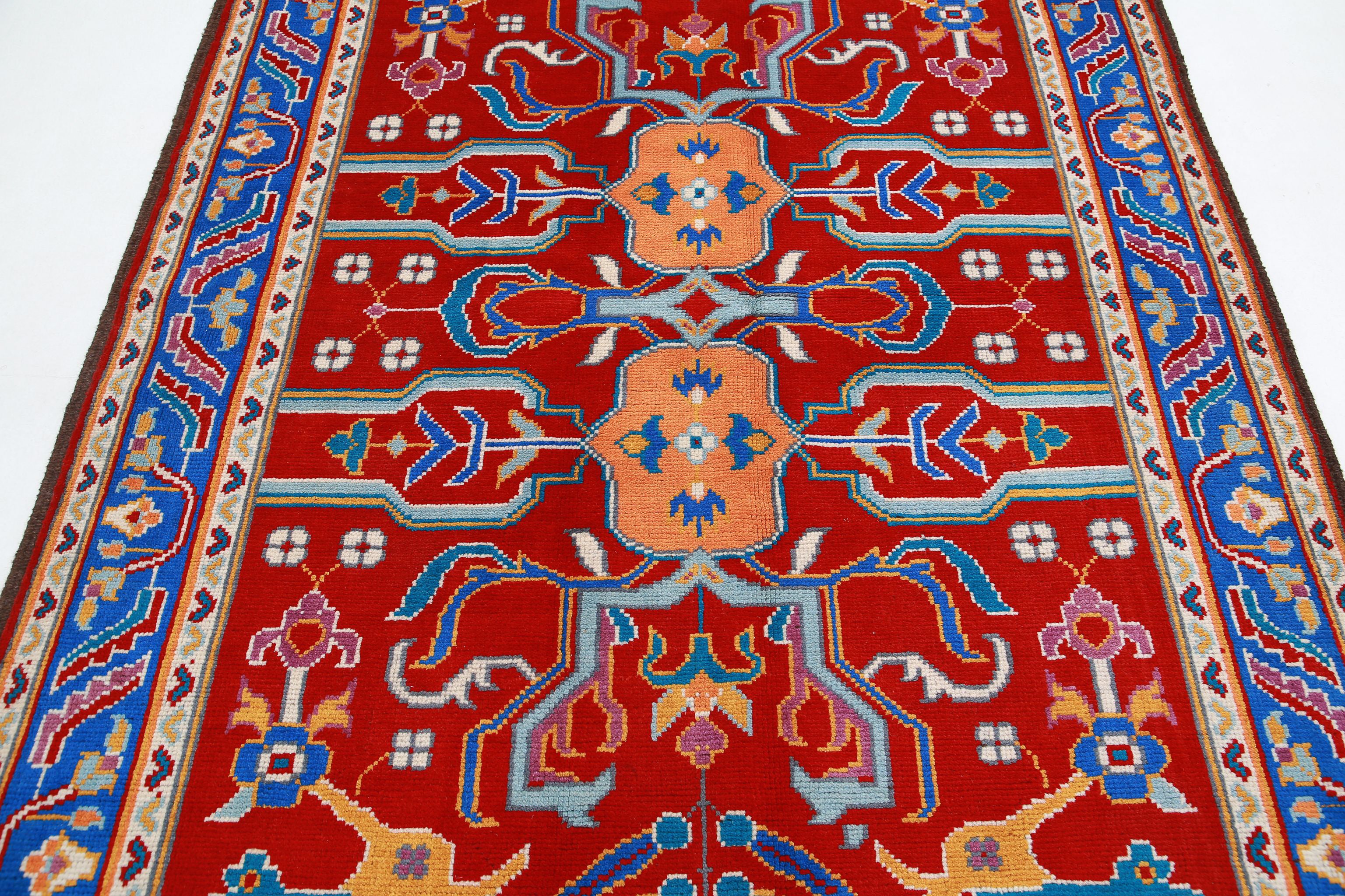 This collection of rugs originate from villages in Afganistan and woven in wool. Most of the designs has a beautiful geometric pattern in a variety of vibrant colors, including red, blue, green, gold and yellow. The tribal syle of these colorful rugs would be a great addition to any room in your home. The rug is knotted in loose weave knotting method i.e. like the Oushak Collection.
