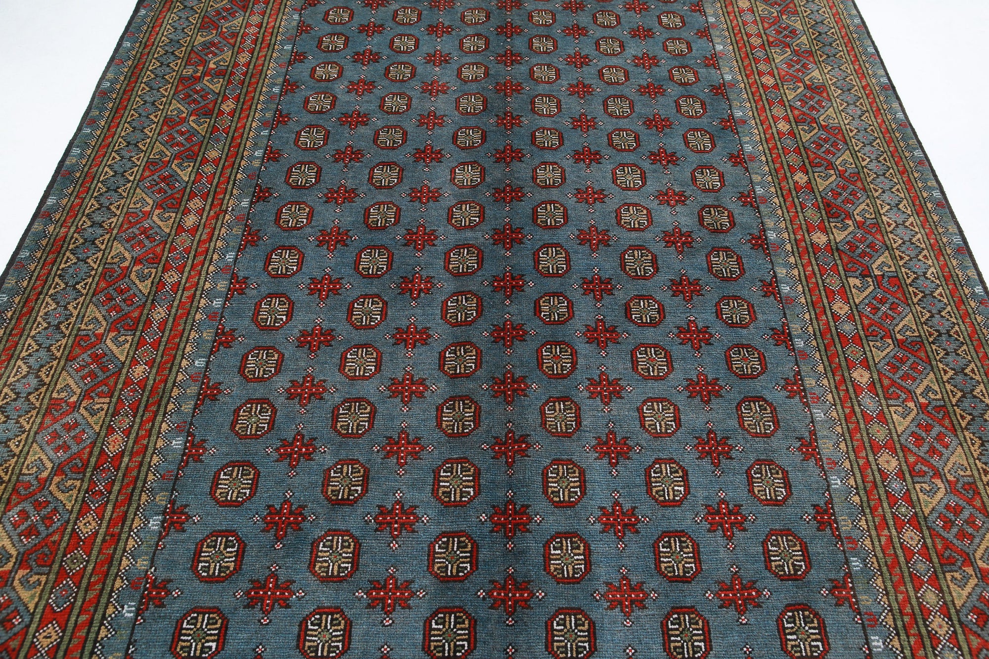 This collection of rugs originate from villages in Afganistan and woven in wool. Most of the designs has a beautiful geometric pattern in a variety of vibrant colors, including red, blue, green, gold and yellow. The tribal syle of these colorful rugs would be a great addition to any room in your home. The rug is knotted in loose weave knotting method i.e. like the Oushak Collection.