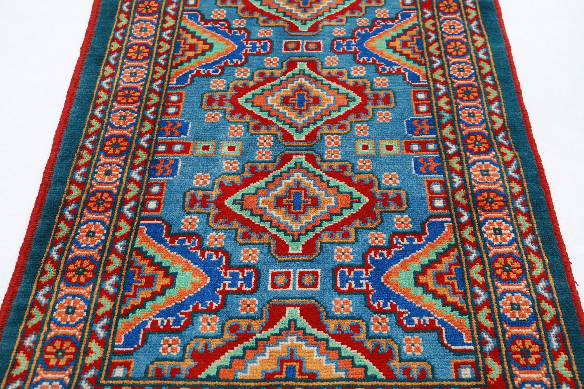 This collection of rugs originate from villages in Afganistan and woven in wool. Most of the designs has a beautiful geometric pattern in a variety of vibrant colors, including red, blue, green, gold and yellow. The tribal syle of these colorful rugs would be a great addition to any room in your home. The rug is knotted in loose weave knotting method i.e. like the Oushak Collection.