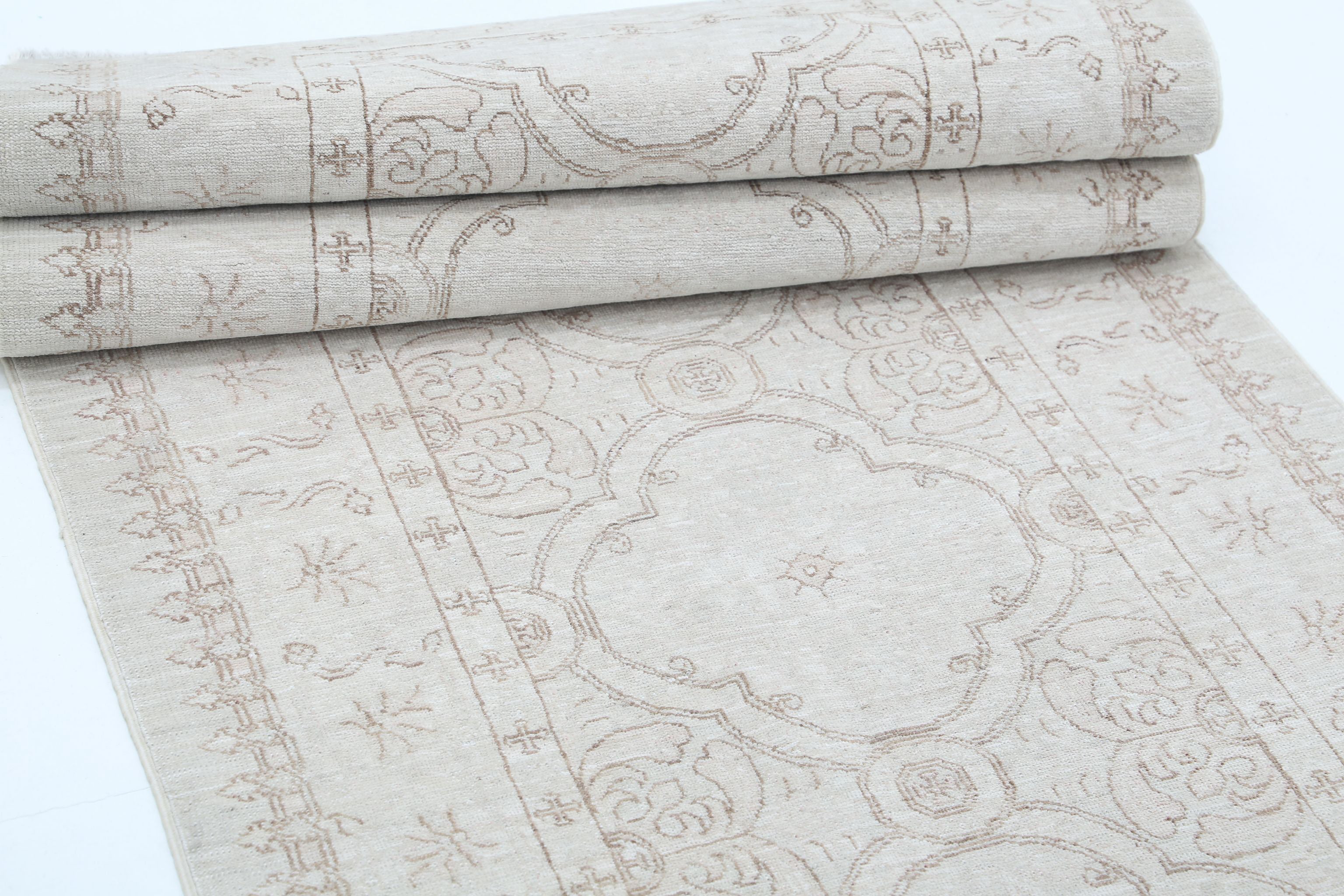 Featuring neutral palette with soft color tones, woven in traditional and transitional designs, Inspired by Persian rugs like Tabriz, Sultanabad, Ziegler and the Turkish Oushak Motifs. Our Serenity collection is a treat for the eyes. The soft color tones and subtle finishes of these hand knotted oriental rugs can make any living place comfy, cozy, and serene.