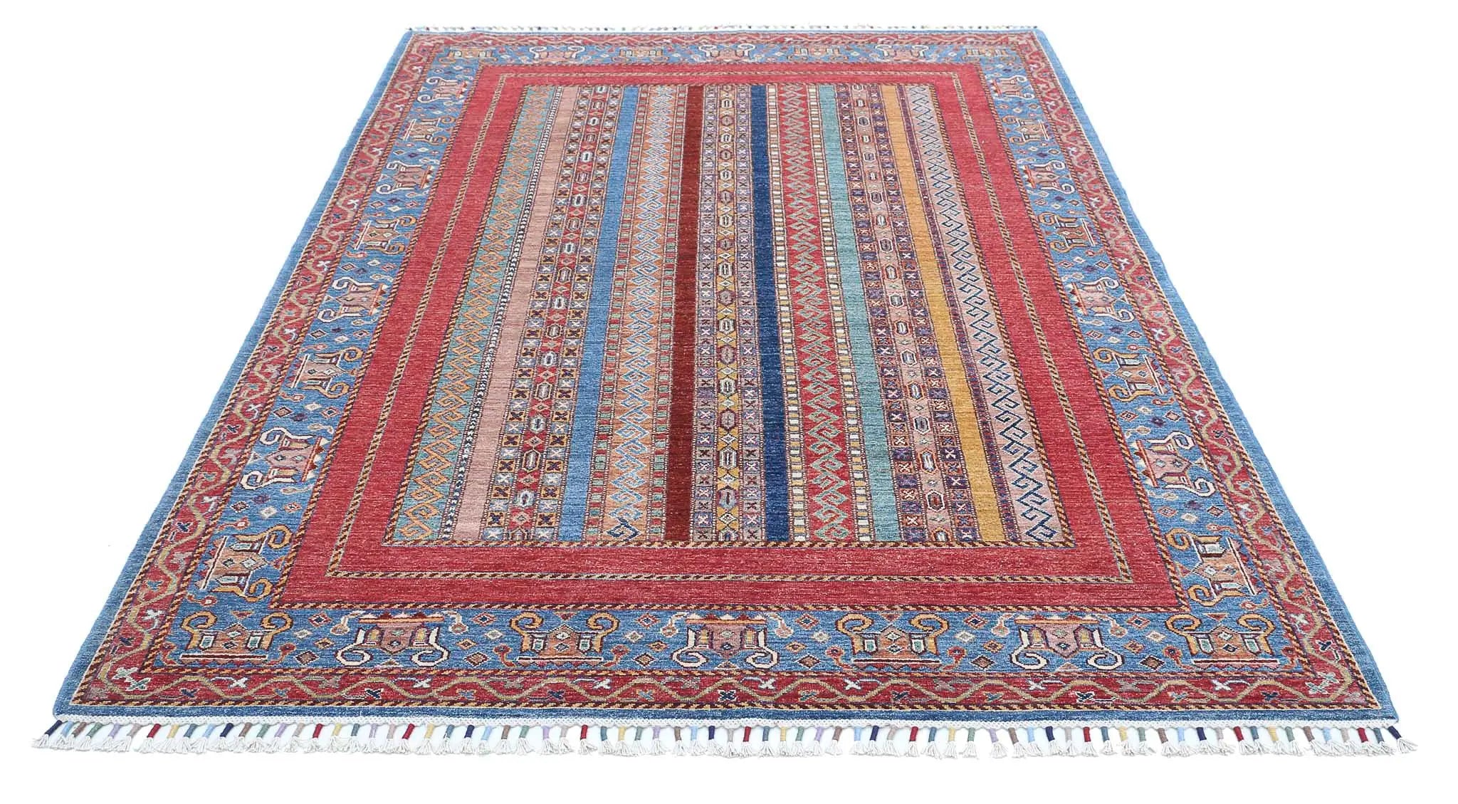 Afghanistan is the country where Shaal carpets, a type of oriental rug, are produced. They are renowned for their intricate designs, hand-spun wool, and use of natural vegetable dyes. A variety of oriental designs, including Persian flower patterns, tree of life patterns and garden themes, are the inspiration for shaal carpets. They frequently have colorful, wool-wrapped tassels and are typically woven in an Afghani weave. Along with their distinctive vertical stripes, Shaal carpets stand out from Khurjeen rugs with their horizontal patterns.